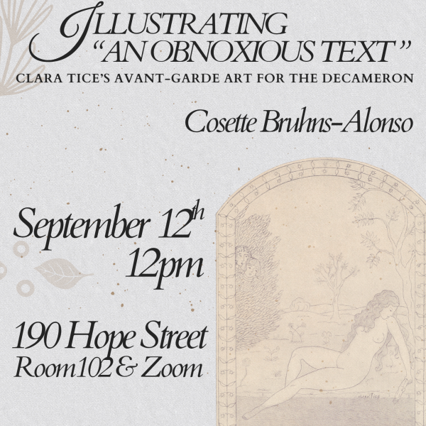 The lecture is titled, “Illustrating ‘An Obnoxious Text’: Clara Tice’s Avant-Garde Art for the Decameron” and the paper abstract is the following: