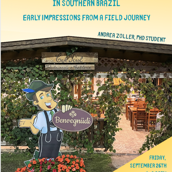 This colloquium will offer an overview of my recent research trip to the Brazilian states of Rio Grande do Sul, Santa Catarina, and São Paulo, where I visited communities with heritage ties to my home region (Trentino-Südtirol). I will share insights and experiences from this preliminary research visit, which will serve as the foundation for my IRB-approved project and potentially my upcoming PhD dissertation.
