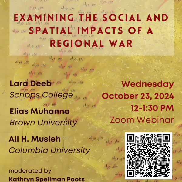 Join the Middle East Institute and the Center for Palestine Studies at Columbia University and the Center for Middle East Studies at Brown University for an online conversation examining the social and spatial impacts of the regional war in Palestine and Lebanon. The panelists, Lara Deeb, Elias Muhanna, and Ali H. Musleh will examine how the current violence intensifies the existing challenges that communities were already facing, as a result of past wars, conflict and systemic corruption. They will focus particularly on how communities and neighborhoods, across religious, ethnic, gender and class lines, are affected by the escalation of violence and displacement. What is the role of diasporic and global networks in advocating and supporting local communities? What role does the academy have in responding to the effects of violence in these impacted societies? This panel will be moderated by Kathryn Spellman Poots.